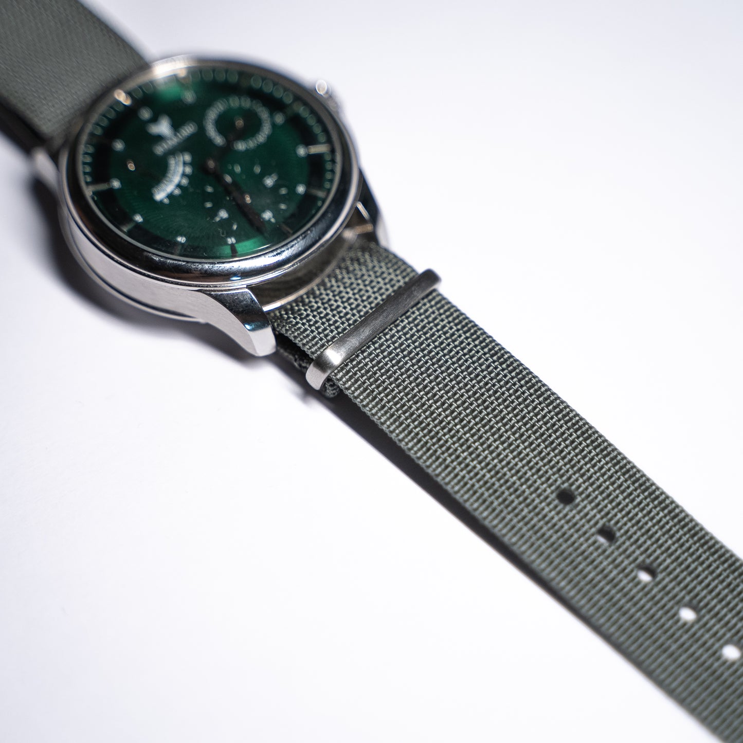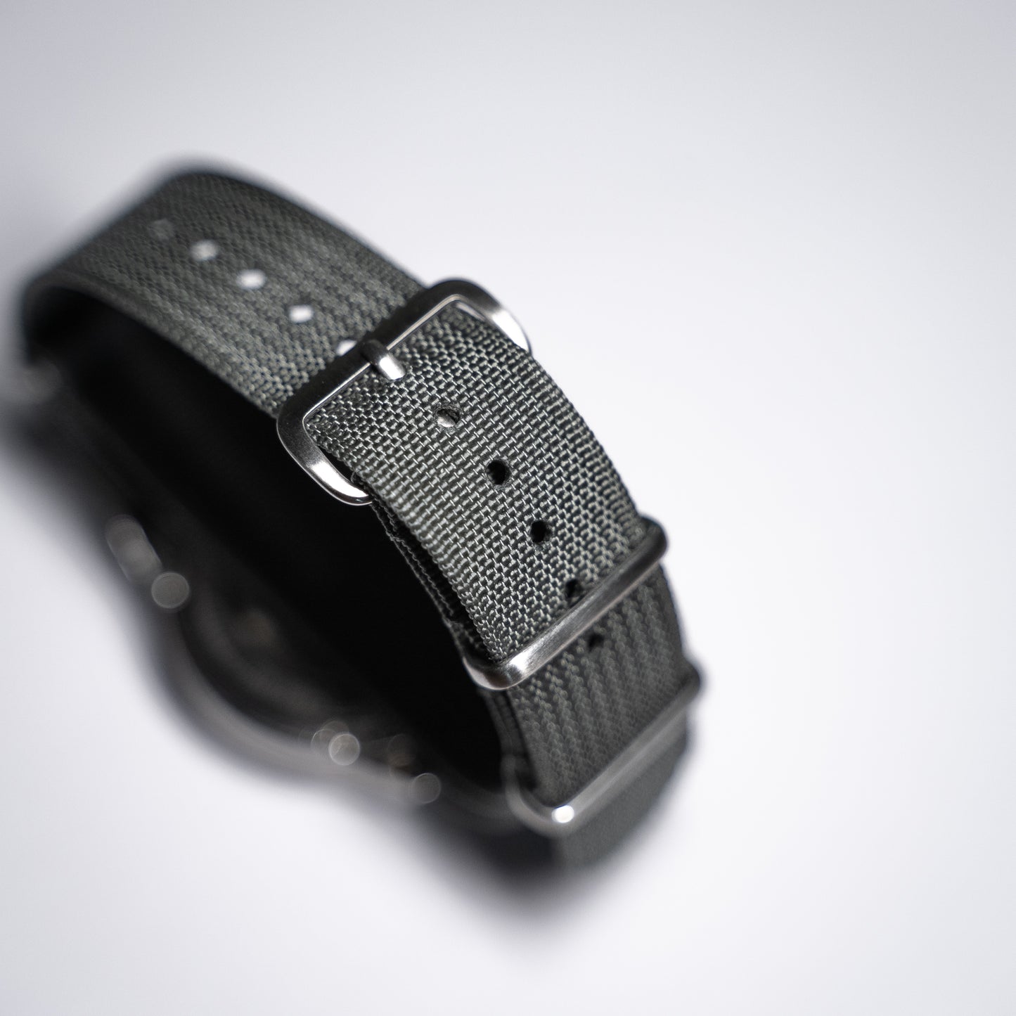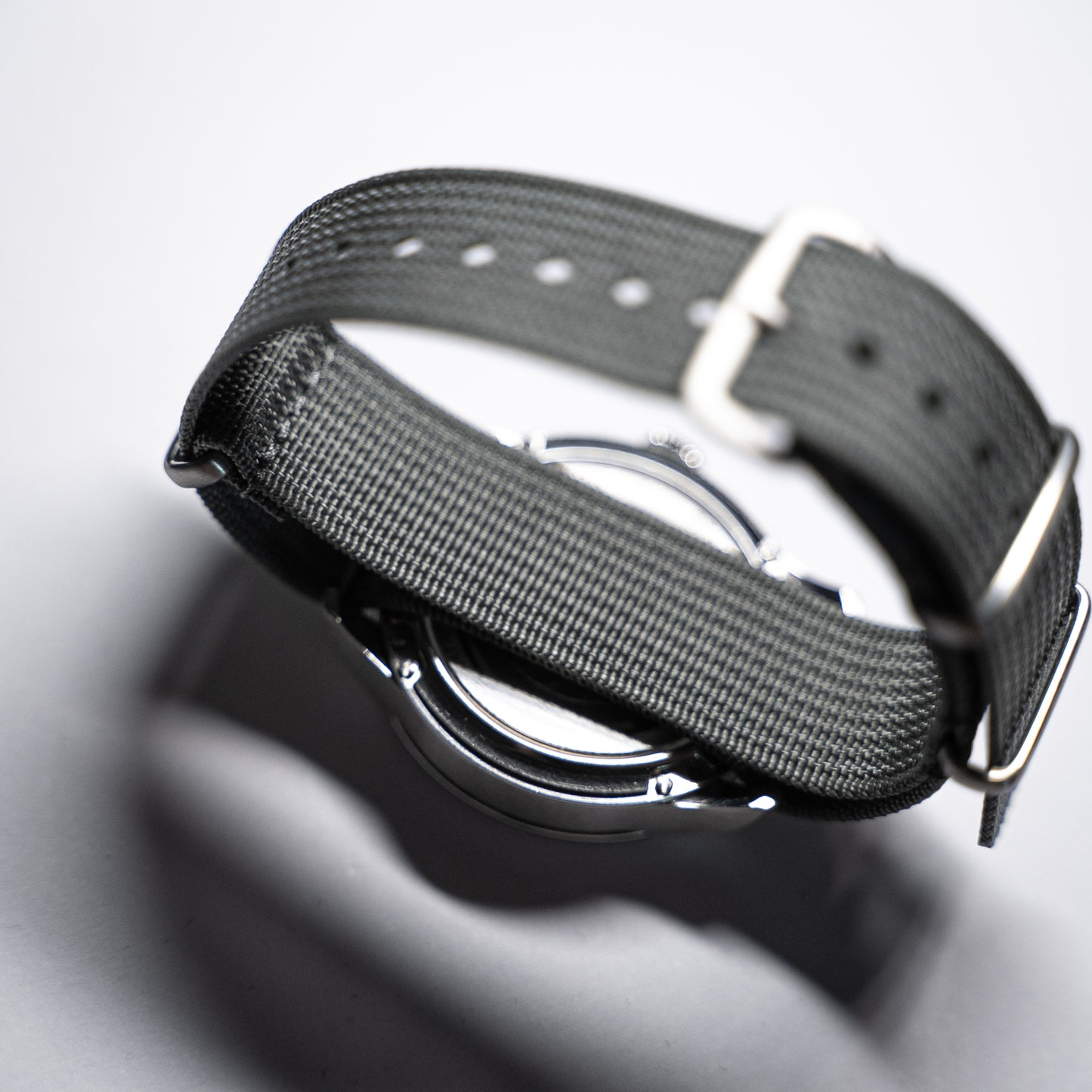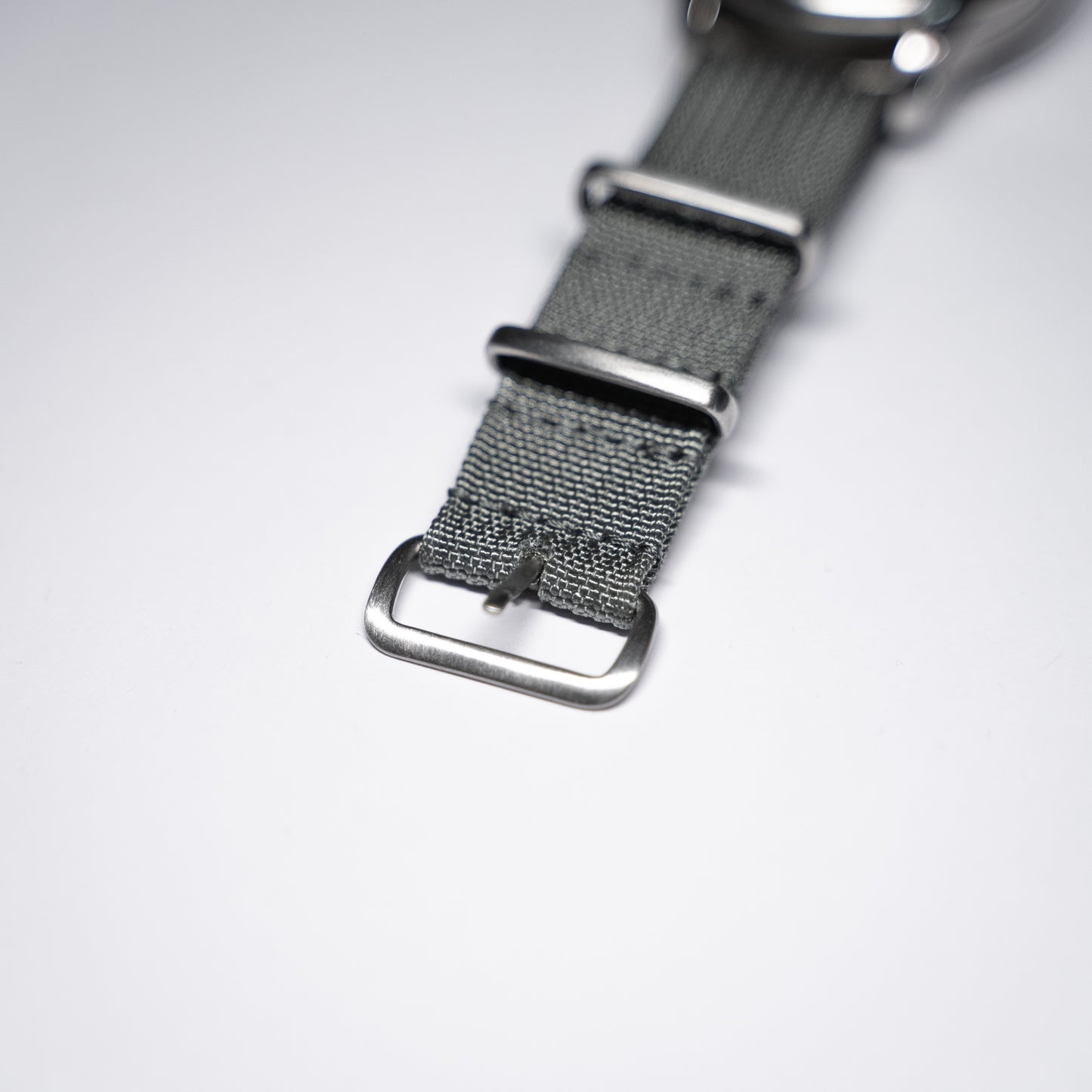 Den grå nylonrem tilbyder både stil og funktionalitet med sit vandtætte design og justerbare størrelse, hvilket gør den ideel til enhver lejlighed og enhver håndledsstørrelse.