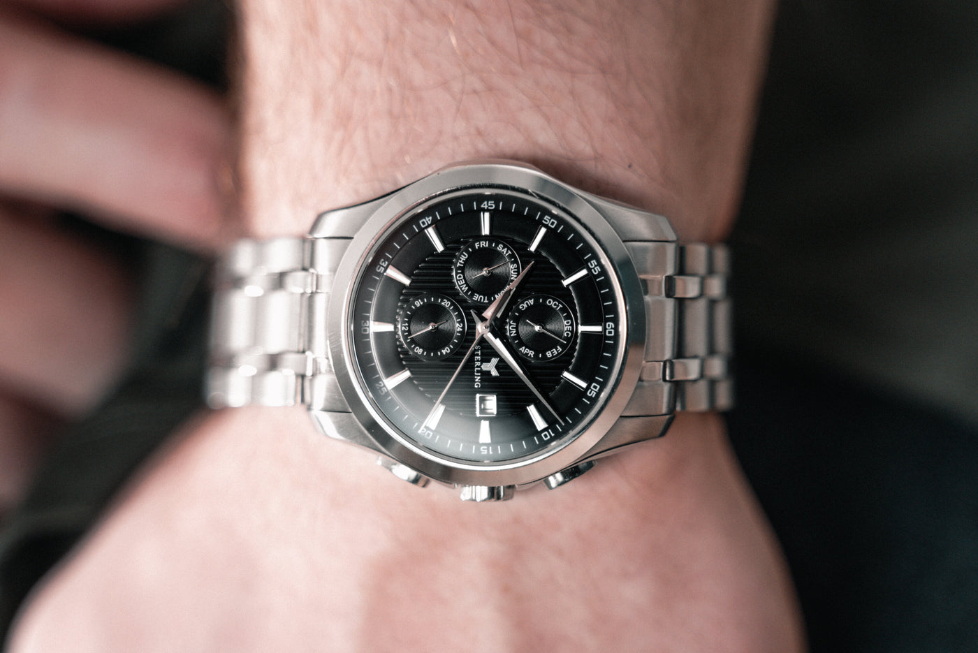 Sterling Century er vores mest robuste og maskuline ur. Med 3 komplikationer, kan du både holde styr på månederne, ugedagen og datoen.